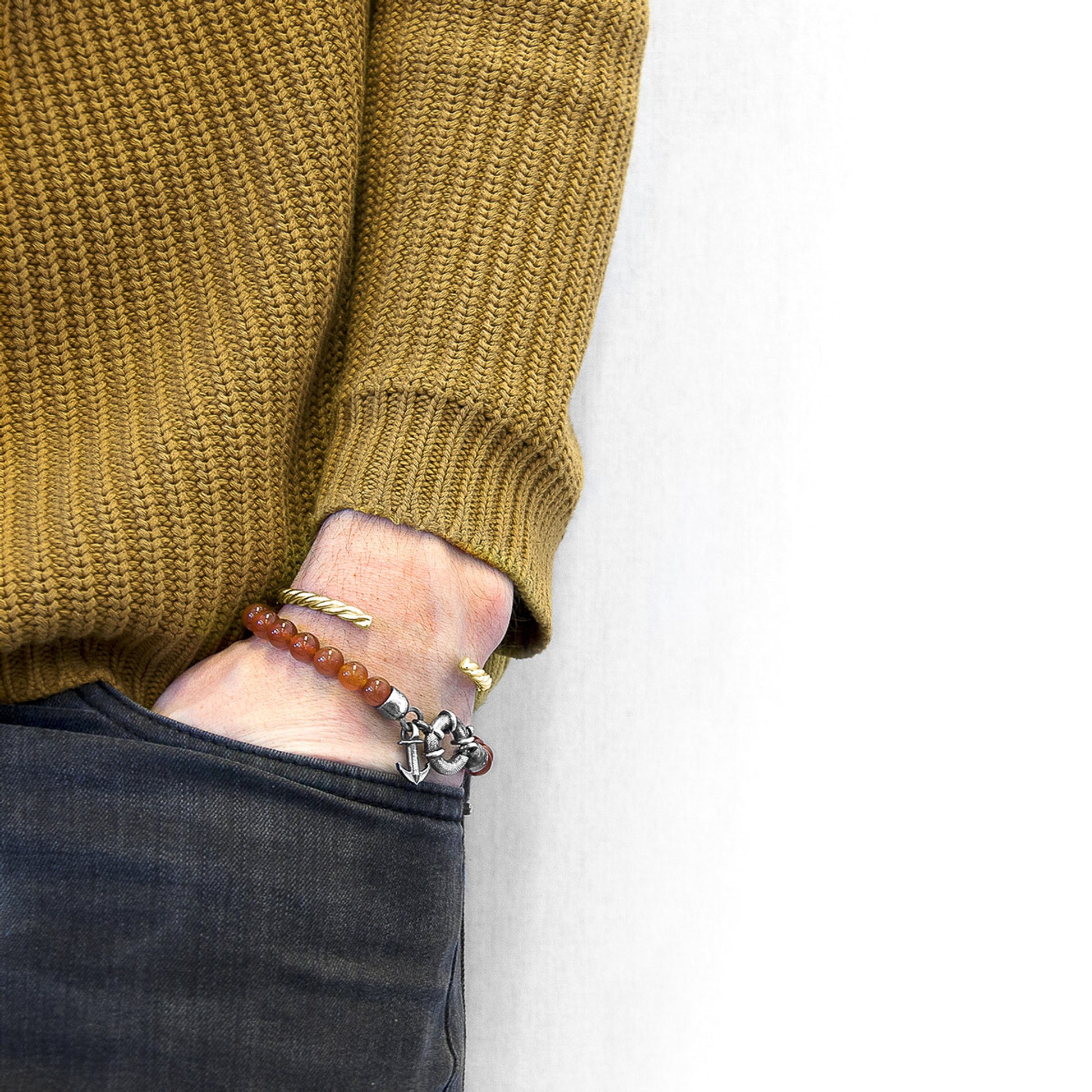 - Minimalist shape consists of one continuous barrel in a full-length three stranded rope pattern