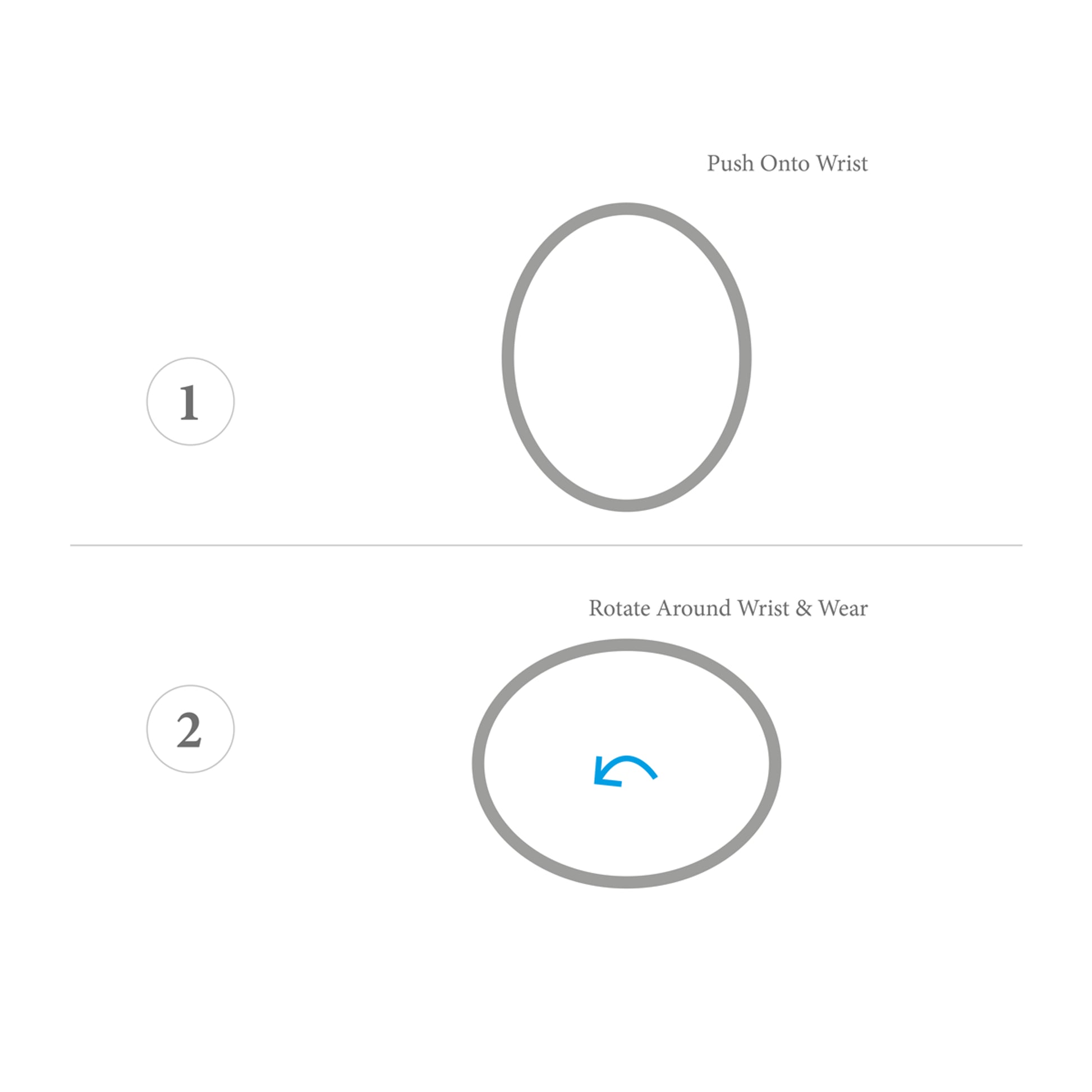 This bangle is available in one size only, 55mm between inside surfaces across the wrist which roughly equates to 19cm around the wrist. With the bangle having no wrist opening, it's shape can only be very lightly adjusted to suit. Less is More.