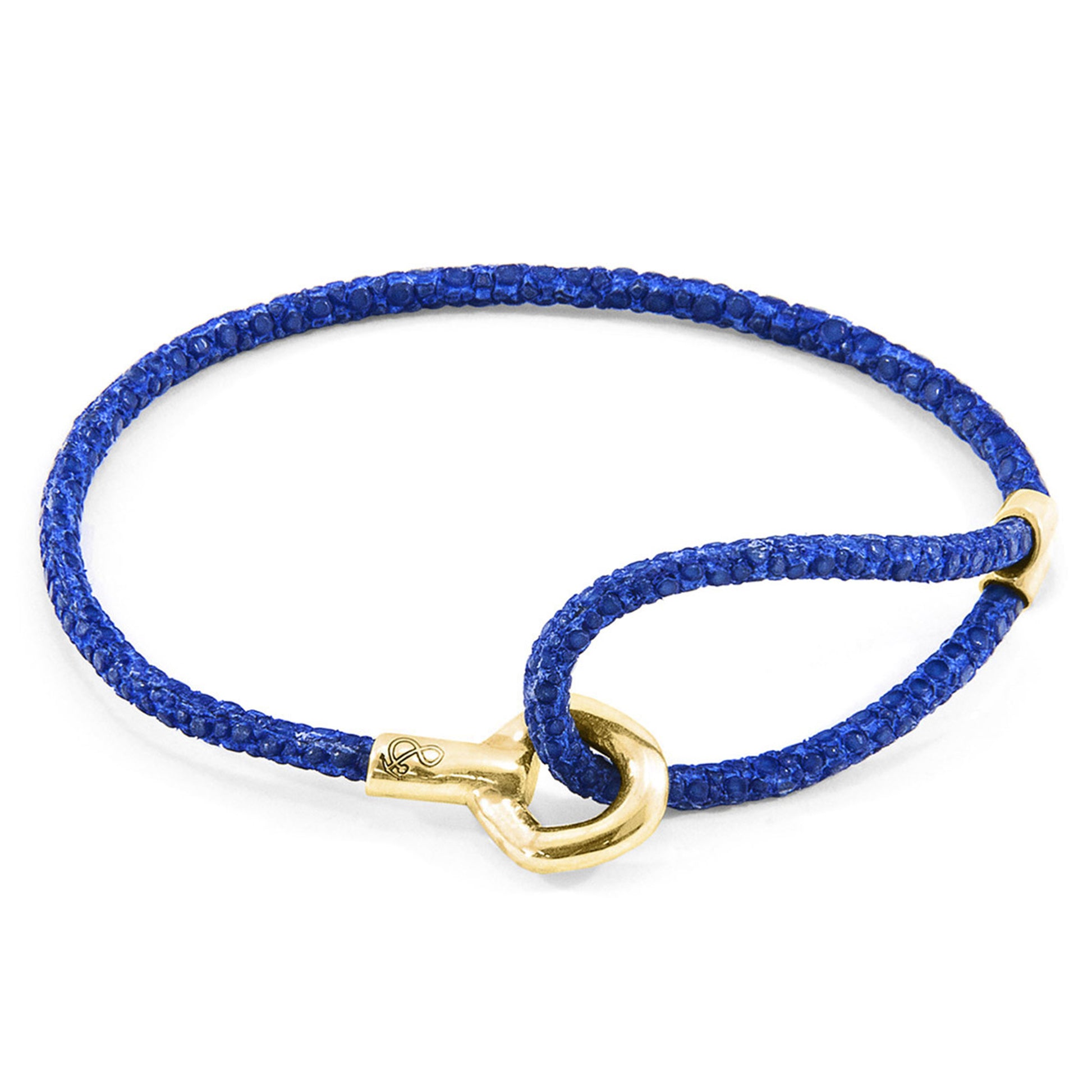Noble Azure Blue – 9ct Yellow Gold & Stingray Leather Bracelet - British Handmade