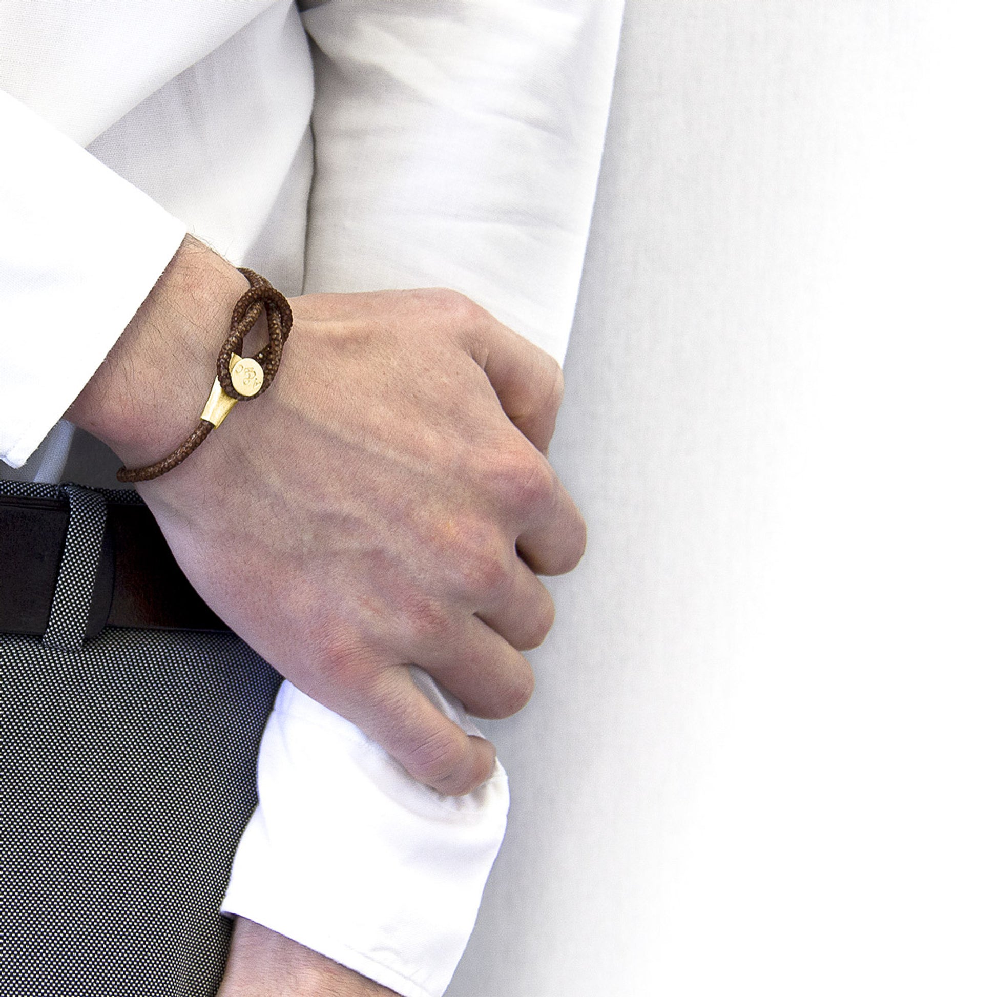The Mocha Brown Empire 9ct Yellow Gold and Stingray Leather Bracelet was both designed and skilfully handcrafted completely in Great Britain. Combining British craft manufacturing with a discerning modern-minimalist style, this bracelet features: