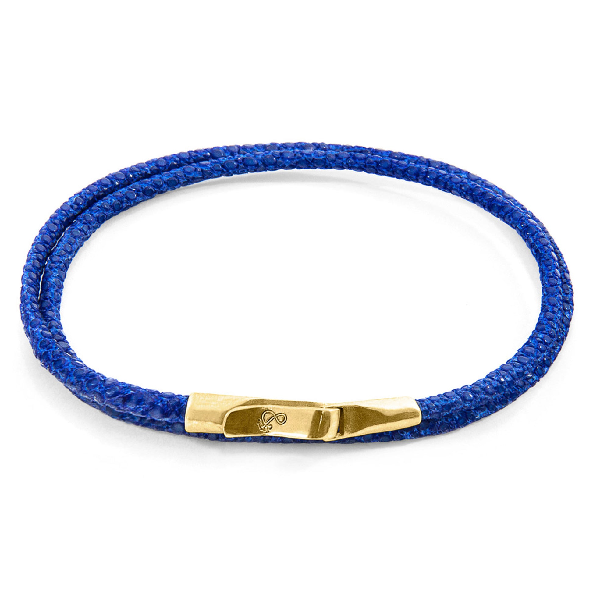 Regal – Azure Blue Stingray Leather & 9ct Yellow Gold Bracelet – Handmade British Jewelry
