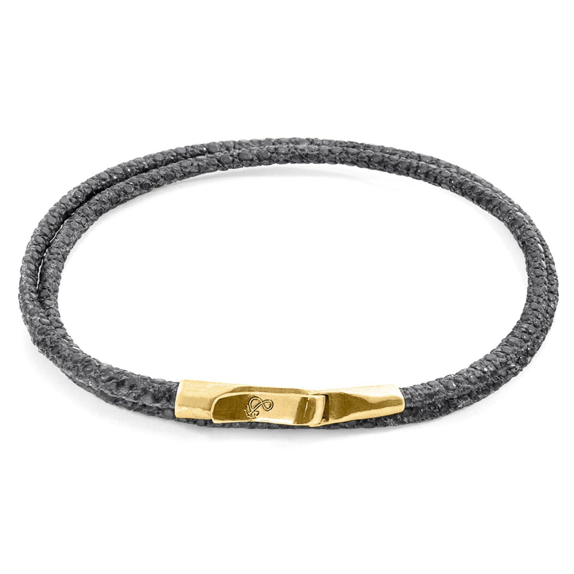 Regal – Shadow Grey Stingray Leather & 9ct Yellow Gold Bracelet – Handmade British Jewelry