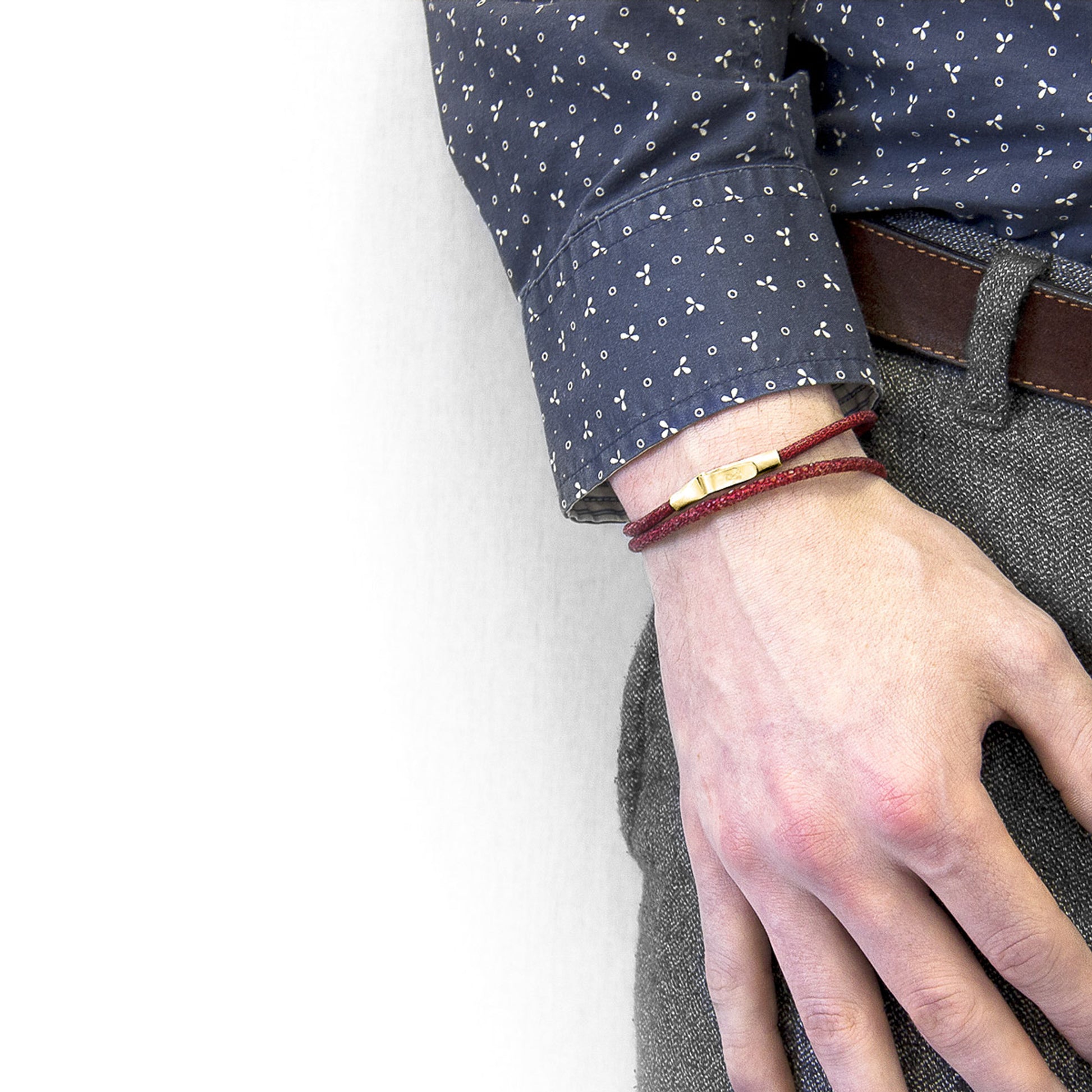 Regal – Bordeaux Red Stingray Leather & 9ct Yellow Gold Bracelet – Handmade British Jewelry