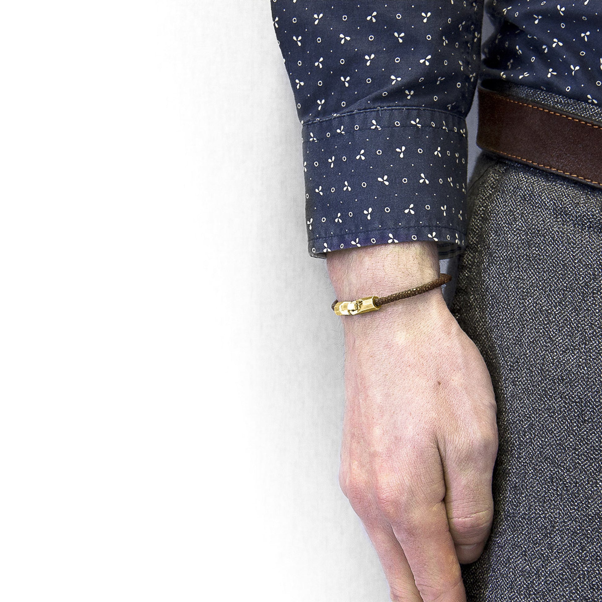 The Mocha Brown Noctis 9ct Yellow Gold and Stingray Leather Bracelet was both designed and skilfully handcrafted completely in Great Britain. Combining British craft manufacturing with a discerning modern-minimalist style, this bracelet features:
