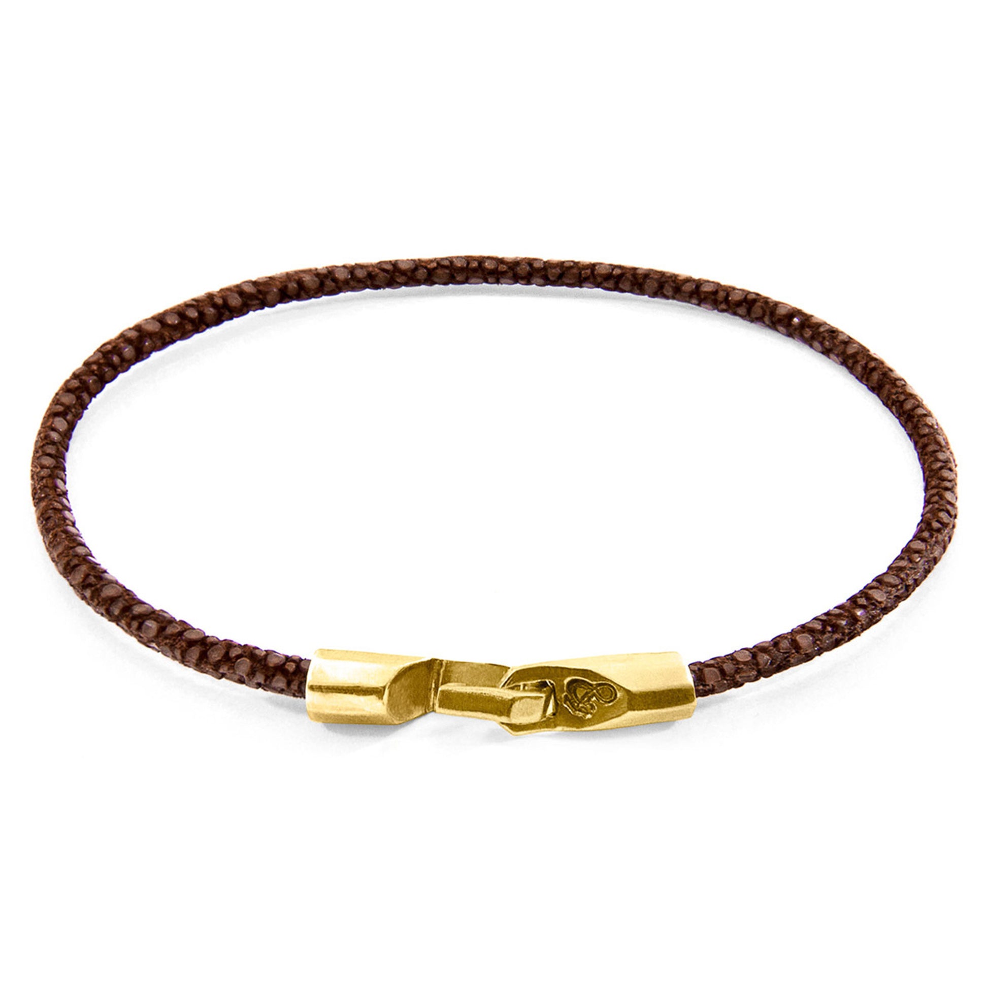 Noctis Bracelet – Mocha Brown Stingray Leather & Solid 9ct Yellow Gold – Handmade British Design