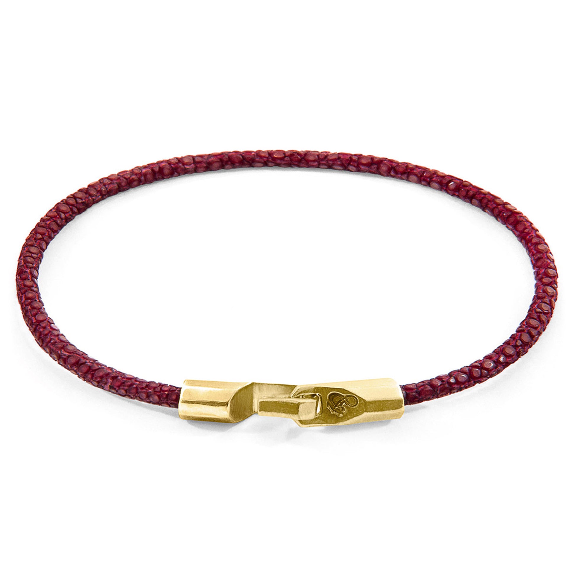 Noctis Bracelet – Bordeaux Red Stingray Leather & Solid 9ct Yellow Gold – Handmade British Design
