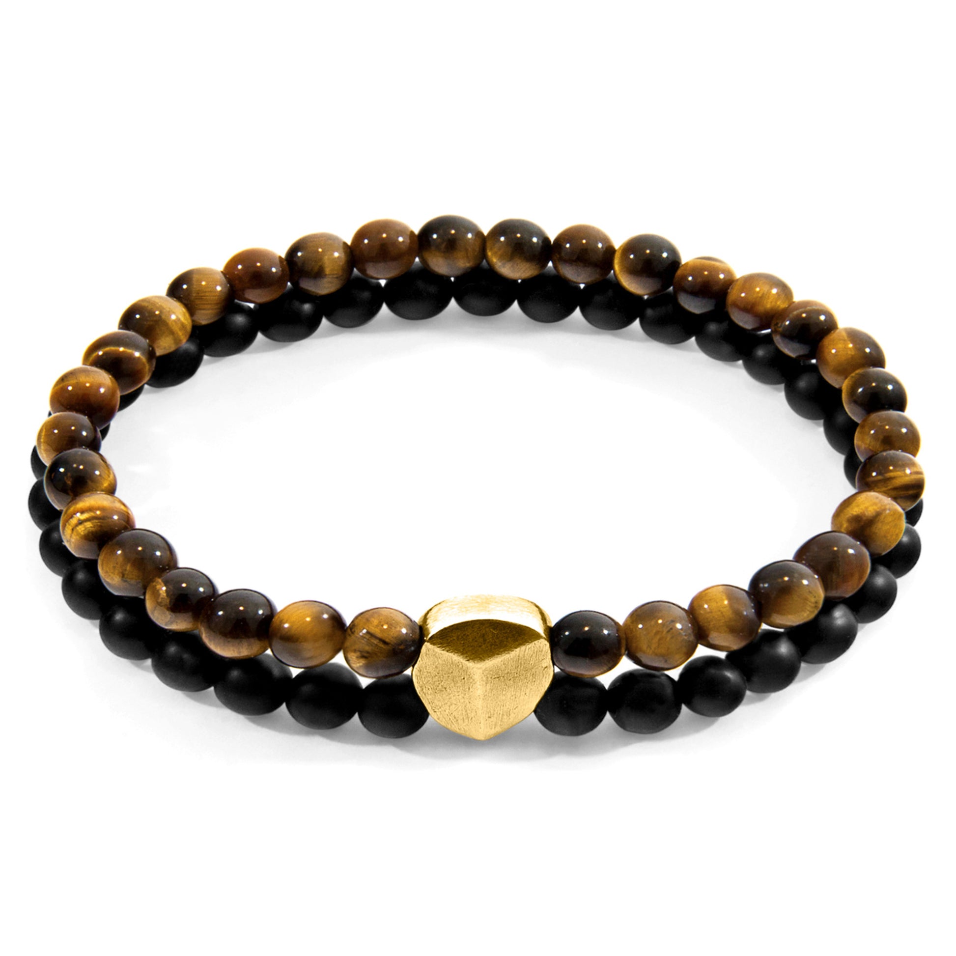 The Brown Tigers Eye Vesper 9ct Yellow Gold and Stone Bracelet was both designed and skilfully handcrafted completely in Great Britain. Combining British craft manufacturing with a discerning modern-minimalist style, this bracelet features: