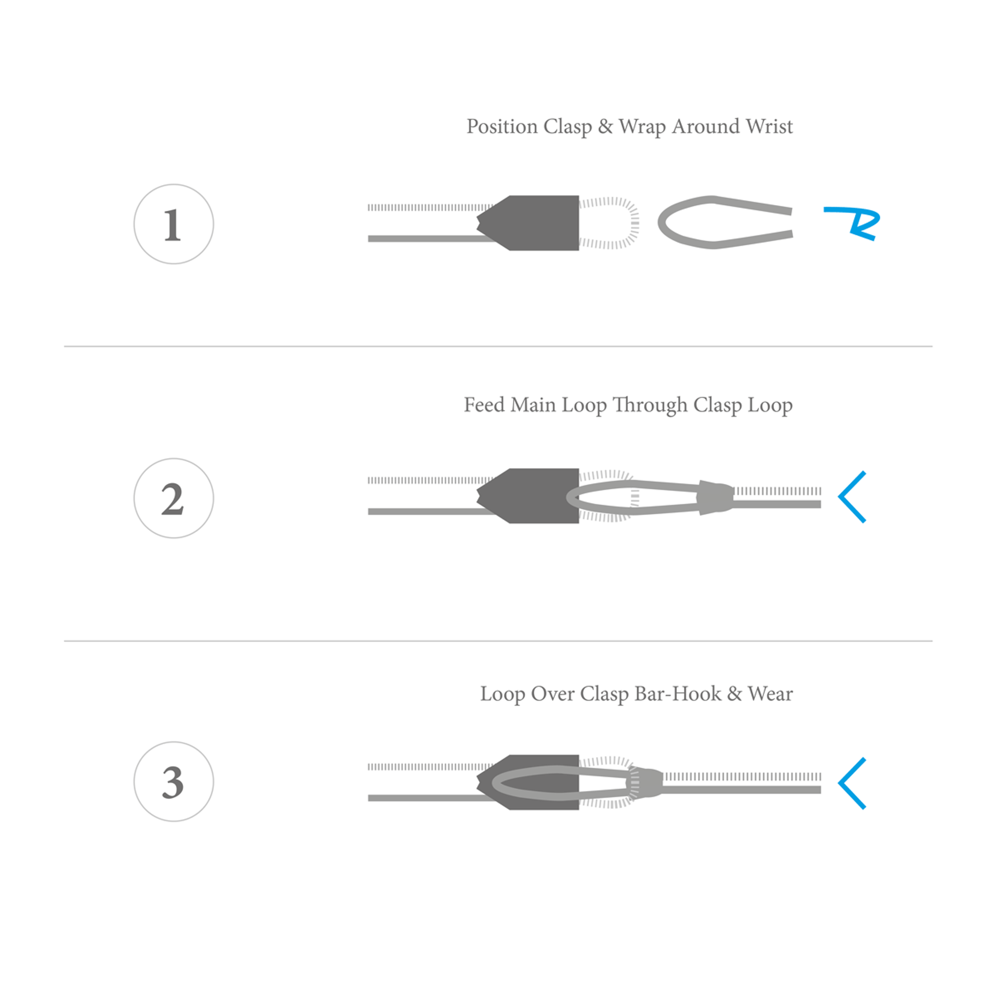 This bracelet is available in four bracelet lengths, 17cm, 19cm, 21cm or 23cm in circumference. To take the bracelet on or off your wrist, simply (un)clutch the leather loop from the bar-hook cleat. As pictured, the bracelet is most secure when the loop is fed through the chain loop that emerges beyond the clasp. Less is More.