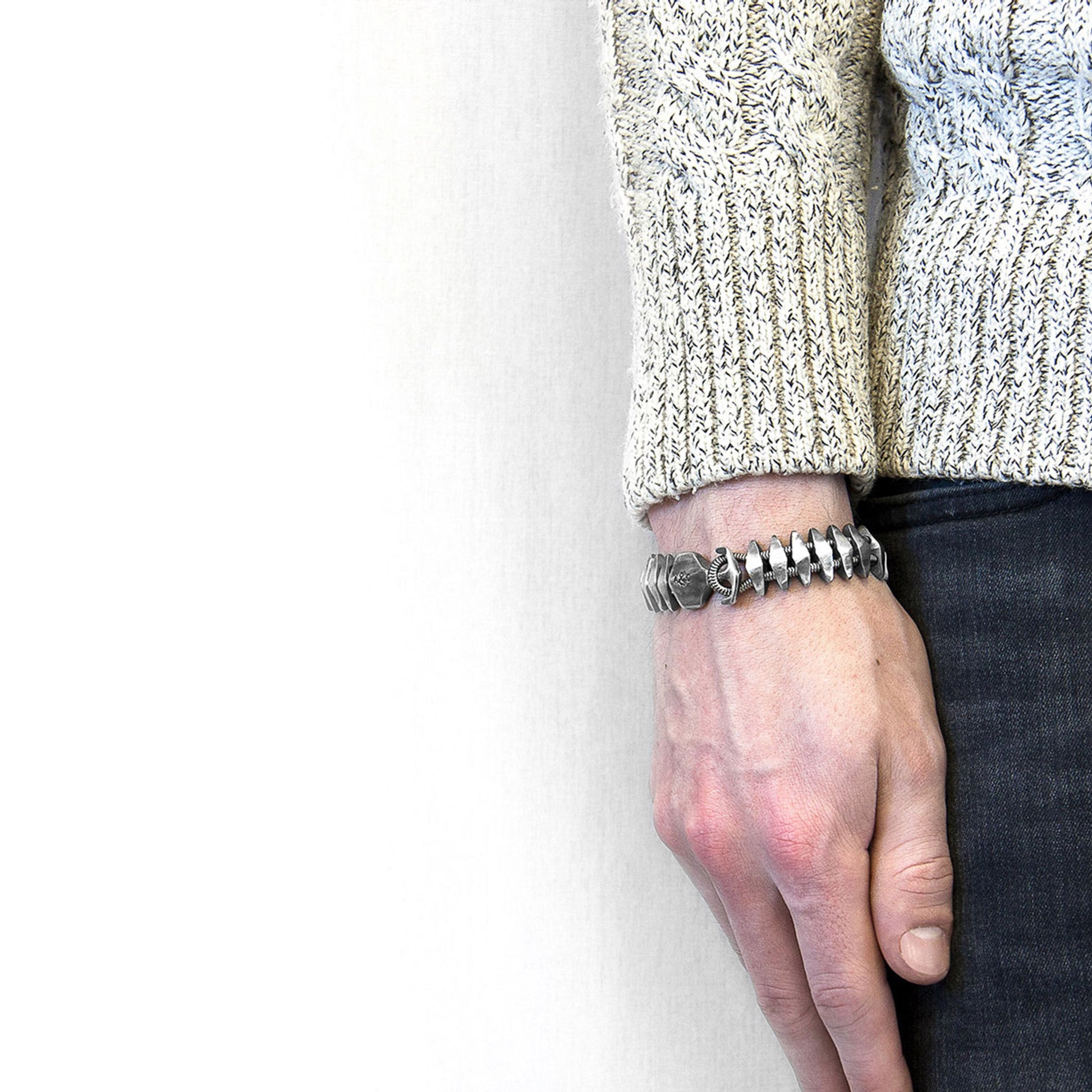 The Drift Silver Chain Bracelet was both designed and skilfully handcrafted completely in Great Britain. Combining British craft manufacturing with a discerning modern-minimalist style, this bracelet features: