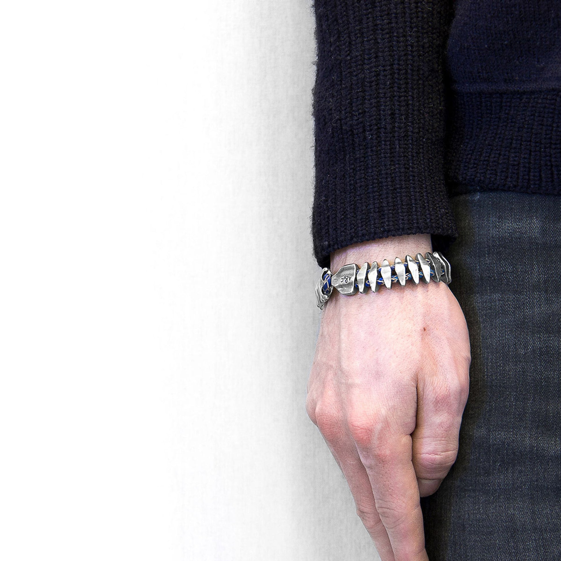 The Royal Blue Drift Silver and Braided Leather Bracelet was both designed and skilfully handcrafted completely in Great Britain. Combining British craft manufacturing with a discerning modern-minimalist style, this bracelet features: